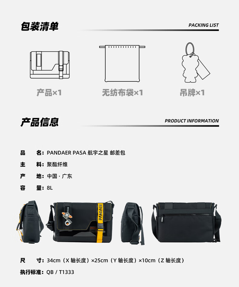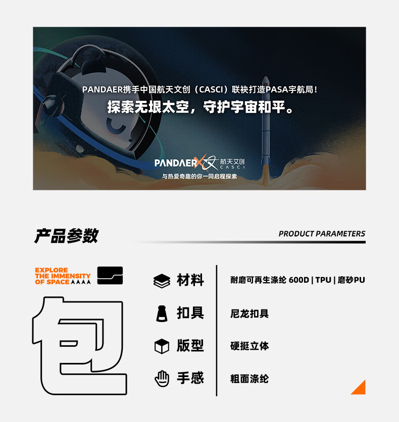 魅族 X 中国航天文创 PANDAER PASA 邮差包 / 双肩包现已开售,定金 359 元与 399 元: